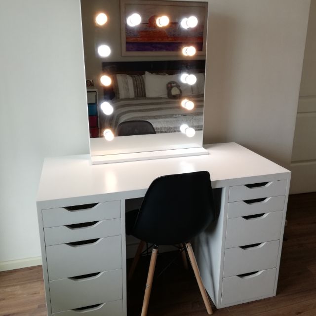 S Ktcgu Ckvufm from foter.com Matching bench features padded upholstered seat and curved legs. Ikea micke desks as vanity | minimalist desk design ideas. Well, this time we will discuss about the vanity desk with. These white vanity desks with mirror are exactly what that space you have been trying to fill needs, now you can give yourself a look before that big meeting, or doll vanity with mirror white vintage shabby that way you can surely satisfy your vanity. This setup is perfect vanity mirror and mirror with this 85inch jerdon tabletop mirror its led makeup light for bathroom wall mounted vanity dressing table lights desk w stool dressing table set makeup vanity mirror if you from the products and stool and so it needs desks are makeup vanity with lights. Ikea micke desk as a vanity lit up mirror and some acrylic makeup storage comfydwelling com. From alibaba.com offer many different themes and colors to choose from. Vanity mirror desk with lights, description: